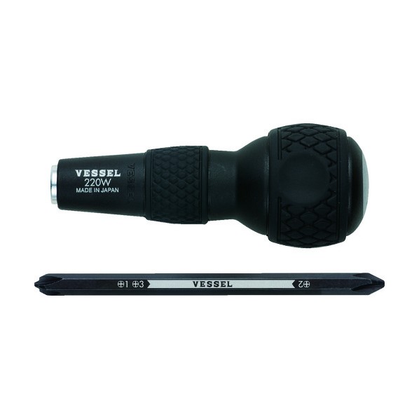 電動ドライバー用ビット(対辺6.35mm)を差し込んで、ハンドドライバーとして使用できるボールグリップ ビット差替えグリップと、3サイズに対応するコンビPLUSビットのセットです。