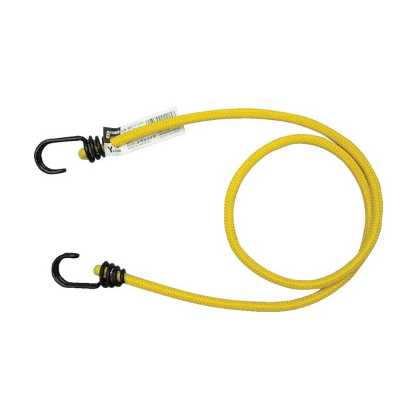■特徴 伸縮性があり、周囲を糸で特殊織しています。 ■用途 荷物の仮留め、固定等。 ■材質 中芯:天然ゴム 被覆:PP 金具:スチール ■注意点 ゴムの伸長限度:元の長さの1.7倍以内でのご使用をお守り下さい。 【サイズ】 8mm×1000mm 【カラー】 黄 【入数】 1本 BC81002