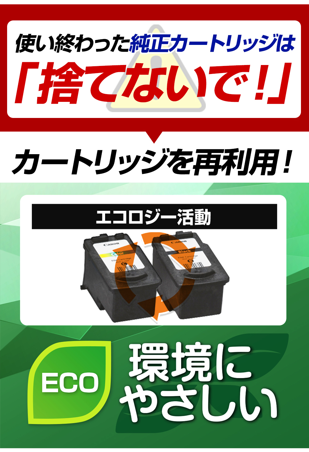 | 使用済みのキヤノン"純正カートリッジ" (BC-365+366 / BC-345+346 / BC-310+311用) ※当セットには付属しておりません。 |