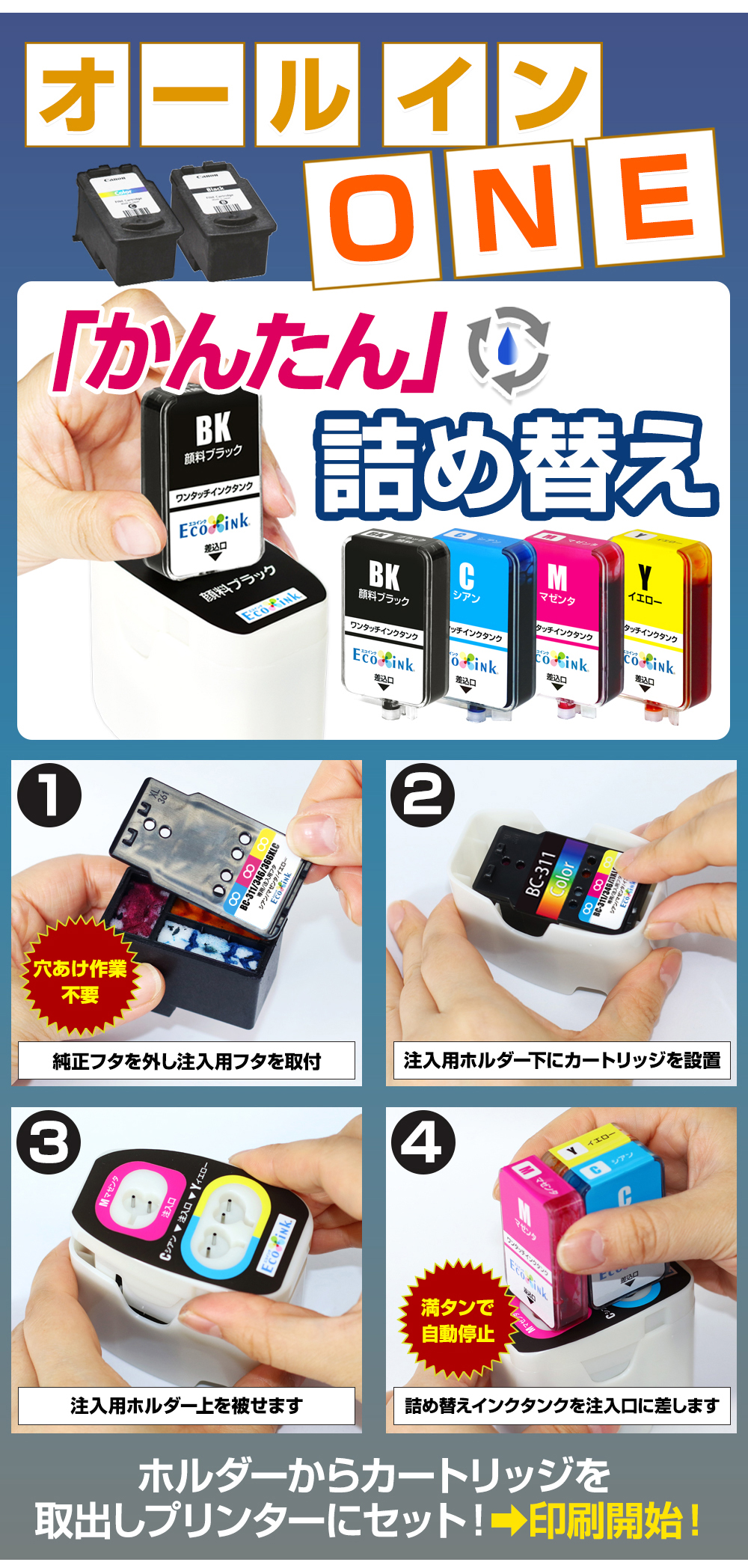 | キヤノンプリンター対応 BC-365+366 / BC-345+346 / BC-310+311【詰め替え器具+補充用インク】ワンタッチ詰め替えインク スターターセット |