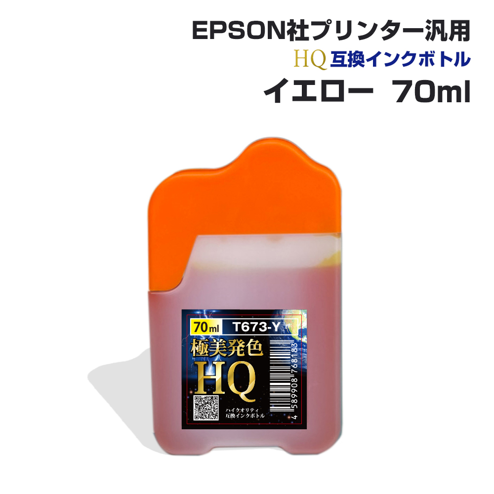 エプソン用 汎用 詰め替え インクボトル イエロー Y 黄色 70ml 互換インク HQ ハイクオリティインク ネコポス 送料無料 EPSON社汎用 エプソンプリンター対応