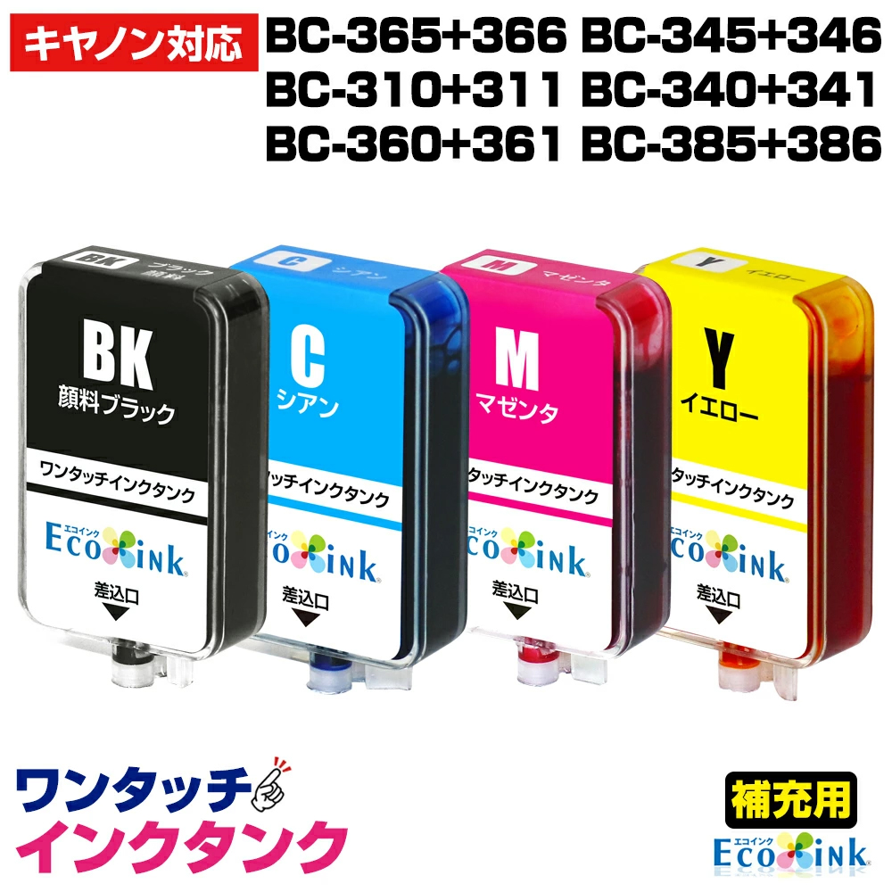 【補充用インクタンクのみ】4色セット BC-365 BC-366 BC-345 BC-346 BC-310 BC-311 BC-340 BC-341 BC-360 BC-361 キャノン 顔料ブラック 大容量11ml