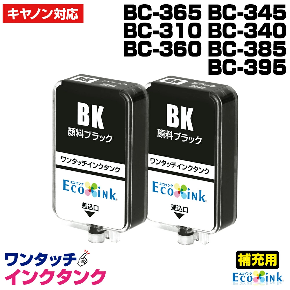 補充用 インクタンク 顔料ブラック×2個【補充用ワンタッチインクタンクのみ】 キャノン BC-365 BC-345 BC-310 BC-340 BC-360 BC-385 BC-395【顔料】大容量11ml