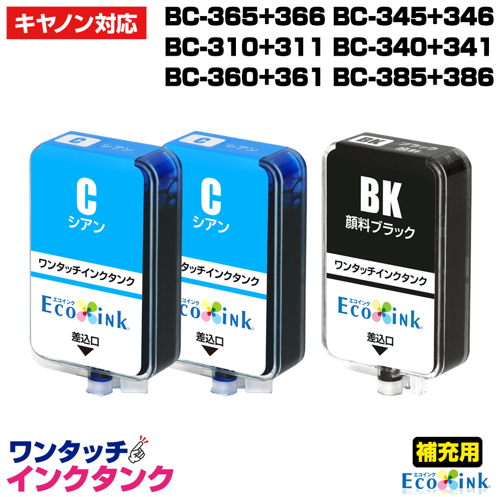 補充用ワンタッチインクタンクのみ キャノン BC-365+366 BC-345+346 BC-310+311 BC-340+341 BC-360+361 BC-385+386 染料マゼンタ2個+顔料ブラック1個 大容量11ml