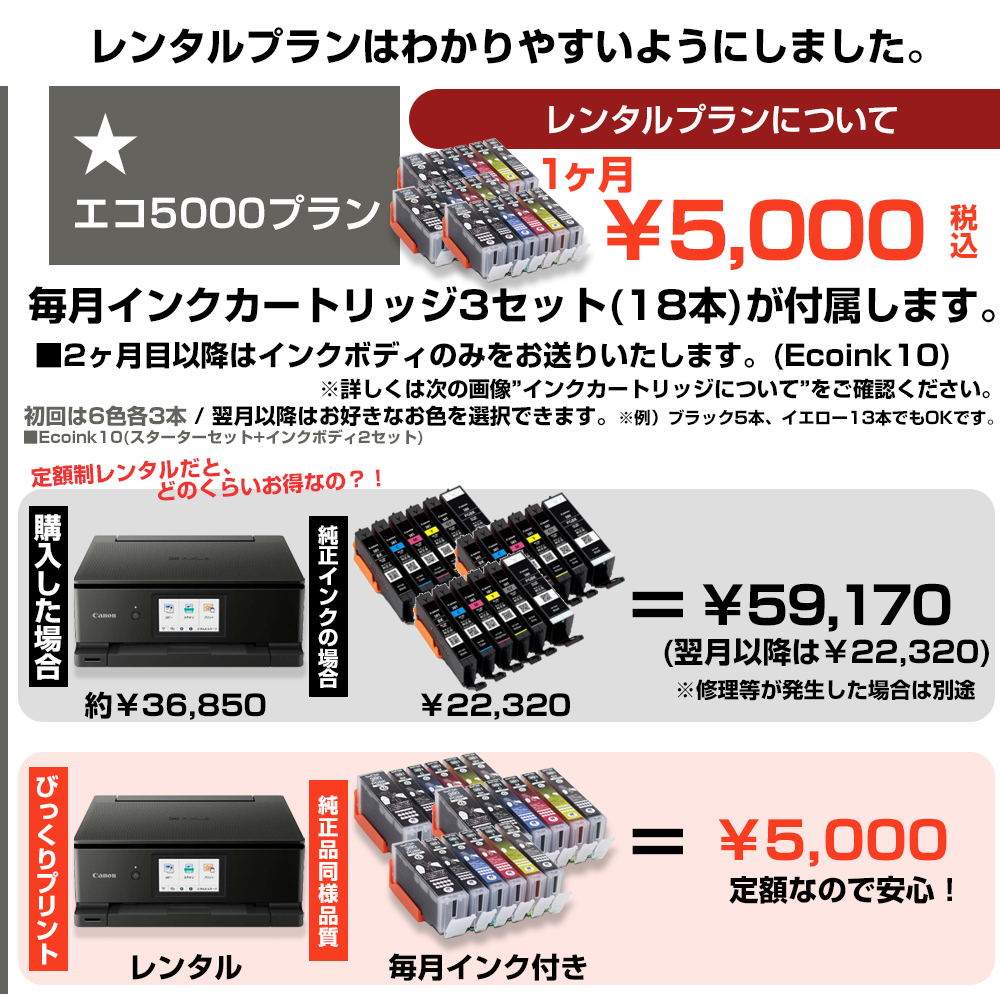 【レンタル】期間12ヶ月(360日) レンタルプリンター TS8530「 エコ5000プラン 」BCI-381 / 380 インク6カラー付 キヤノン社 Canon 家庭用プリンター