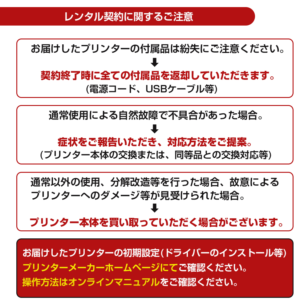 満了日より1週間以内に弊社へプリンターをご返却下さい。