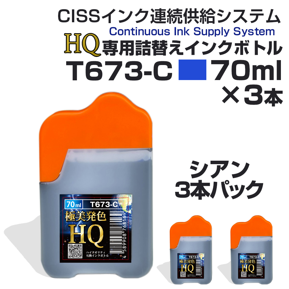 T673-C 詰め替えインク Ecoink オリジナル CISS システム専用インクボトル 70ml 3本パック シアン 青 互換インク 高品質インク プチプラ