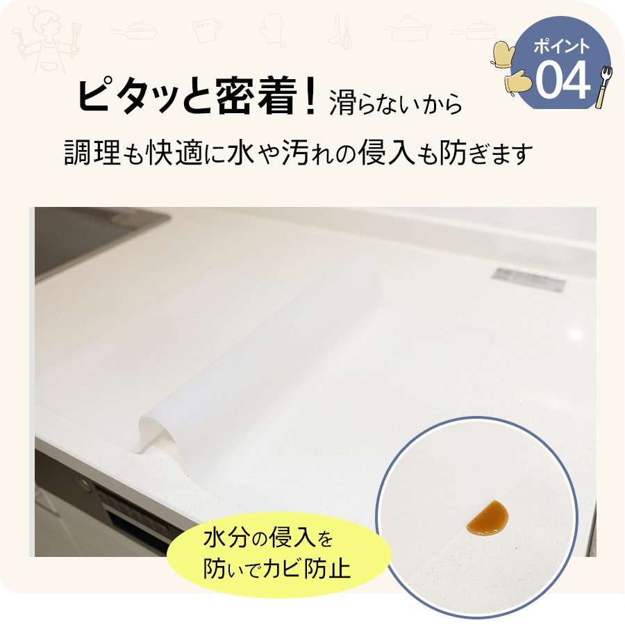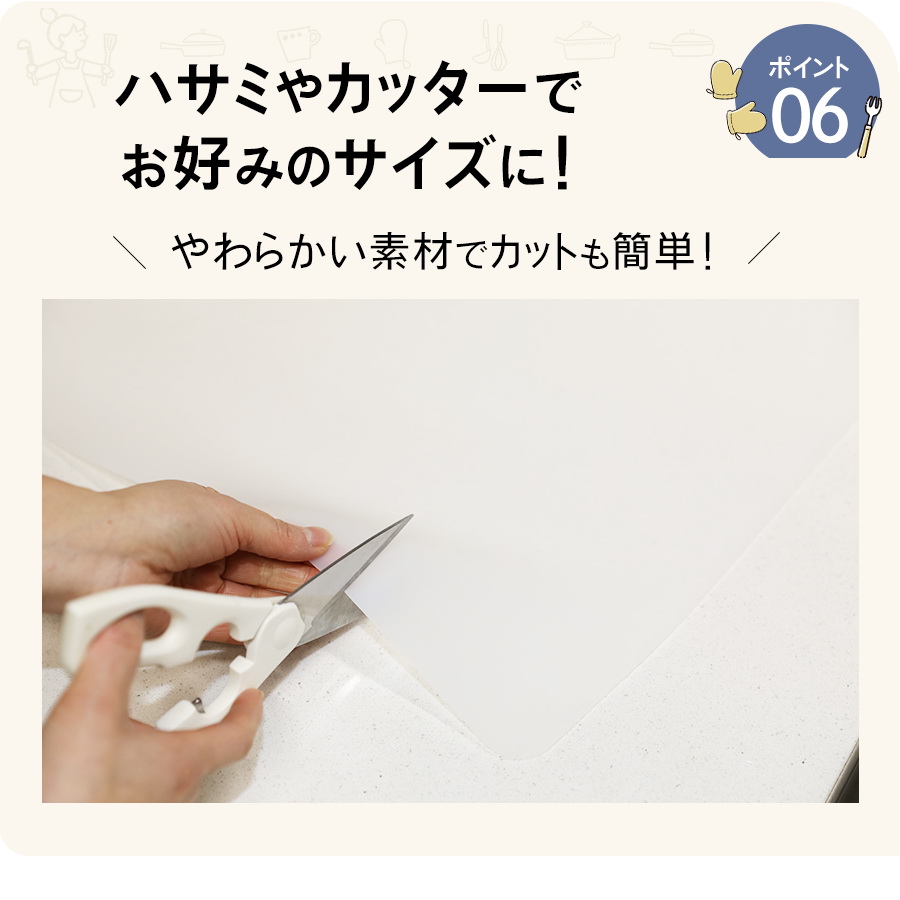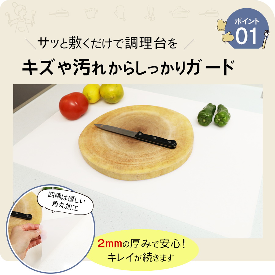 【調理台から傷も汚れもしっかりガード】2mmの厚み!サッと敷くだけで調理台を傷や汚れから守ります。