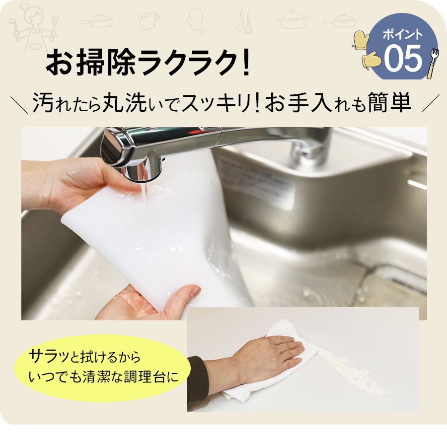 【お掃除ラクラク】サラッと拭けるからいつでも清潔な調理台に。汚れたら丸洗いでスッキリ!お手入れも簡単