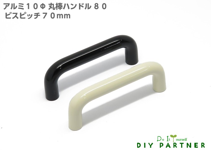 アルミ10Φ丸棒ハンドル 80 アイボリー色 ビスピッチ70mm
