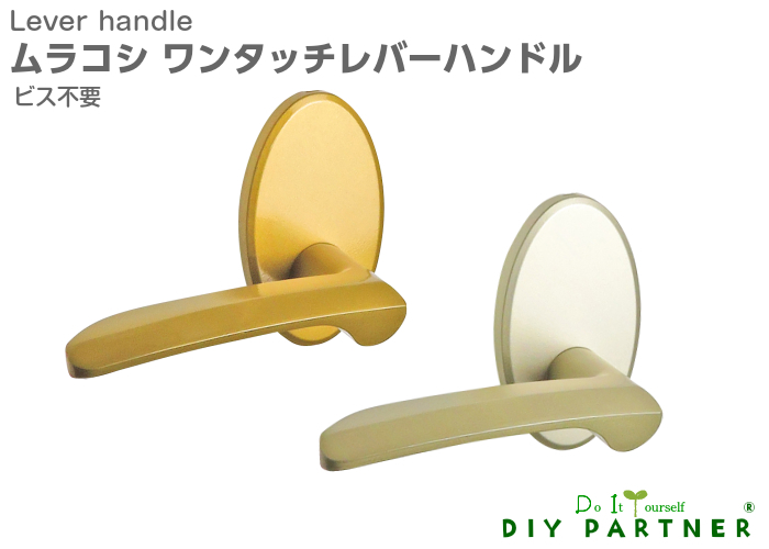 ムラコシ ワンタッチレバーハンドル 52 長座付 チューブラ錠セット ビス不要 交換用 ドアノブ DIY