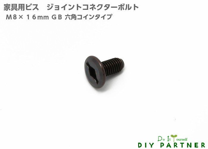 ナット 連結 ジョイント コネクターボルト JCB M8×16mm GB コイン六角 1個 DIY連結金具 組み立てネジ 家具ネジ ジョイントネジ
