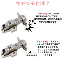 | 材質・サイズ | 105°開き キャッチ付(バネがついておりパタンと閉まるタイプです) 扉厚み 16mm〜30mm用