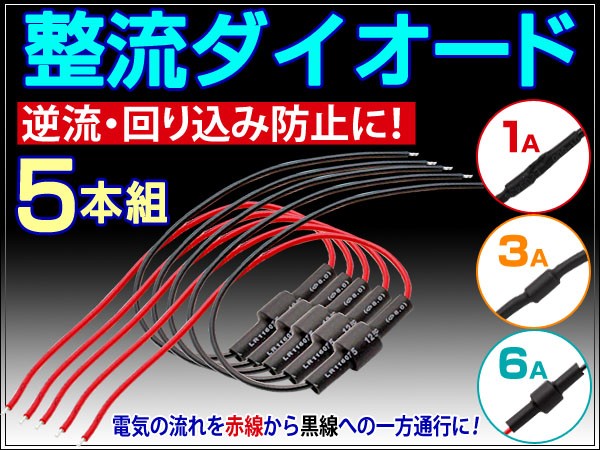 | 電流の回り込み対策、電装品取り付け時のトラブル防止に! 整流ダイオード 5本セット 1A/3A/6A | |