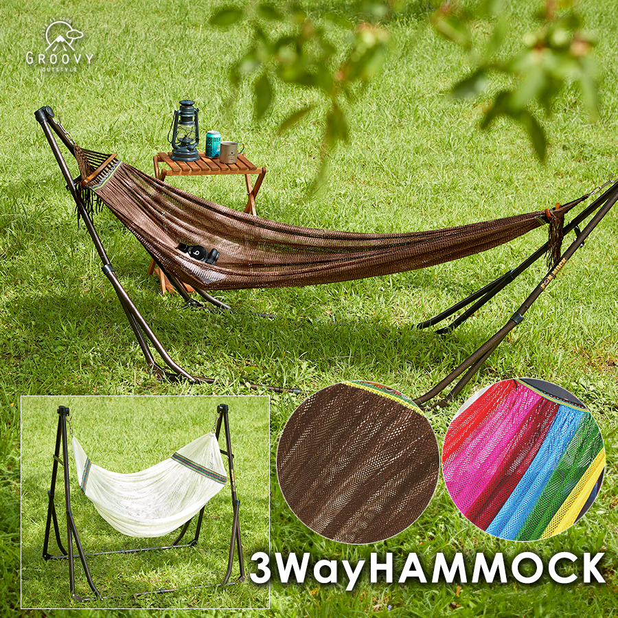 ハンモック 自立式 3Way スタンド おうちキャンプ 室内 マルチ 樅 アウトドア チェア 椅子 ハンガーラック にもなる 屋内外 折りたたみ