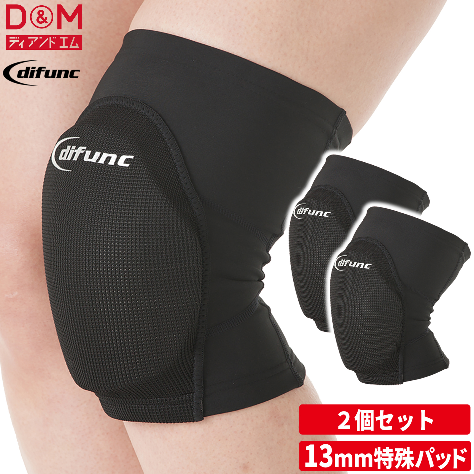 ディファンク バレーボール 膝サポーター トリコット素材 13mm厚パッド付 ショートタイプ 1個入 黒 #D-819 日本製 ひざ 膝用 保護 予防 怪我 負担 軽減 サポート ハンドボール バスケ ダンス ブレイクダンス ヒップホップ ヒップホップダンス ディーアンドエム 公式 difunc▼バレーボール用ひざサポーターの特長レシーバーの動きを考慮した、幅広の特殊形状パッド付サポーターです。