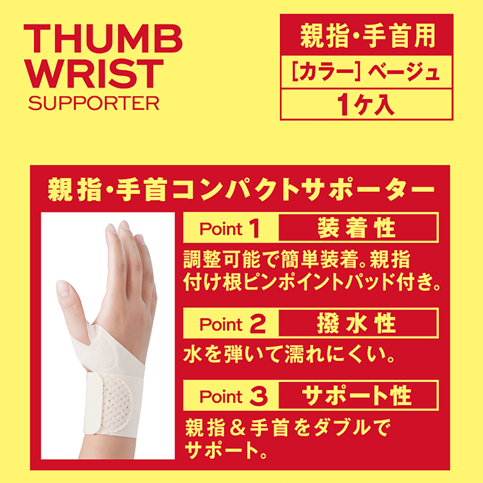 親指・手首コンパクトサポーター サムリスト サポーター 手首 手首サポーター #1111847 #111854 指 親指 付け根 指用サポーター ディーアンドエム スマホ・PC使用時 家事 炊事 育児▼親指手首コンパクトサポーターの特長撥水加工を施しており、シーン問わず使用できる日常用サポーターです。