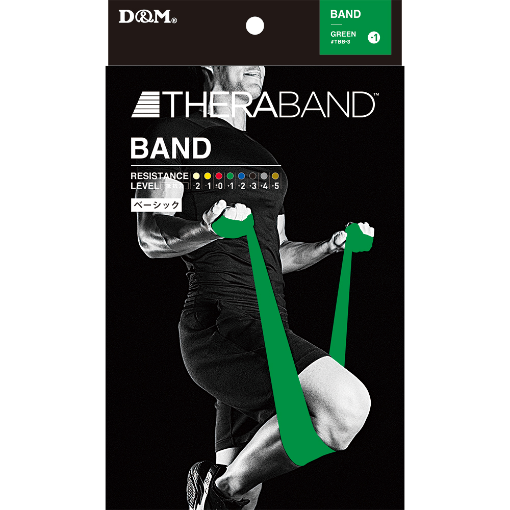 【セラバンド(THERABAND)について】負荷レベルを色別に示した、高品質で伸縮自在のラバーバンドの先駆けとなるブランドです。