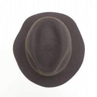 全体的に毛羽立ち、フロントにスレがあります。リボンが1周して付いていたようですが外してあり、欠損しています。リボンのステッチ跡の小さな穴が複数開いています。