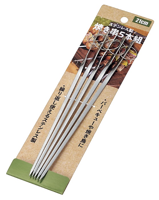 ステンレス製焼き串 5本組 ★ロット割れ不可 10個単位でご注文願います 300個単位で送料無料 /アウトドア/キャンプ/串/調理/BBQ/料理/レジャー