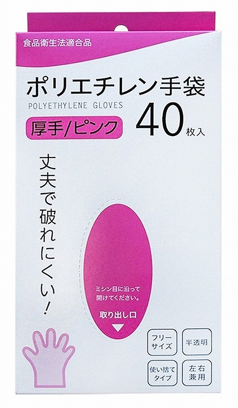 ポリエチレン手袋 厚手ピンク40枚入 ★ロット割れ不可 10個単位でご注文願います 120個単位で送料無料 /衛生/キッチン/清潔/台所/景品/粗品/販促品