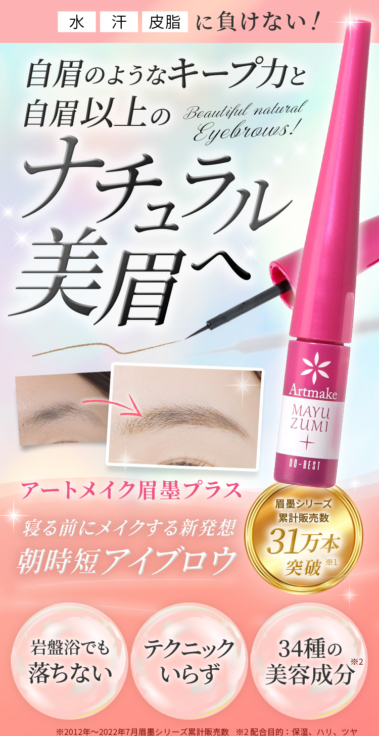 落ちにくいメイクアップアイテムで大好評のアートメイクシリーズ。その中でも一番人気のアイブロウ!汗・皮脂・水・クレンジングでも落ちない「落ちにくさ」を徹底強化!