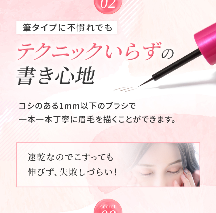 定番のテクニック要らずの細筆で簡単に繊細な線を描け、だれでも簡単に自然で落ちにくい眉を手に入れることができます。
