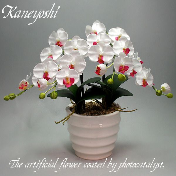 胡蝶蘭小輪の造花に光触媒加工が施してあります。