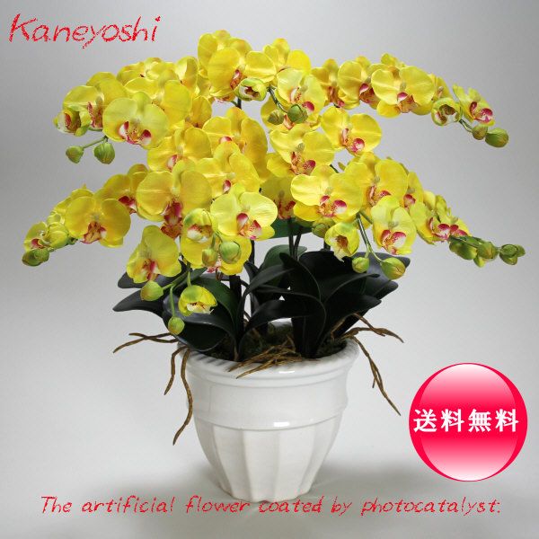 光触媒 胡蝶蘭 造花 インテリア 小輪 5本立 イエロー 黄色 お祝 ギフト 記念品 誕生日 発表会 新築 開店 花 フェイクグリーン 空気清浄