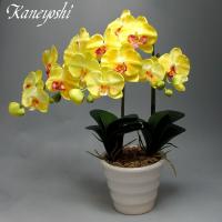 光触媒 胡蝶蘭 造花 インテリア 大輪 2本立 イエロー 黄色 お祝 ギフト 記念品 誕生日 発表会 新築 開店 花 フェイクグリーン 空気清浄
