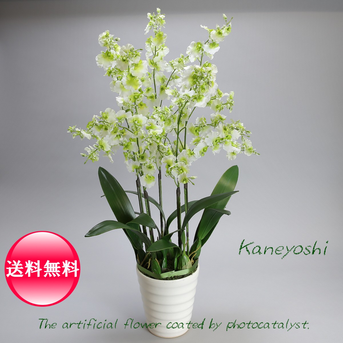 お祝い 造花 フラワーギフト 光触媒オンシジューム 【5本立】 ホワイトグリーン