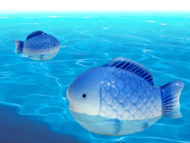 水に浮かぶ陶器製、小魚の置物です。中国製 1個
