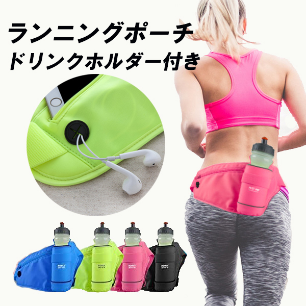 ランニングポーチ スマホ ボトル ジョギング ペットボトルホルダー グリーン ブラック ブルー ピンク アウトドア ランニング サイクリング