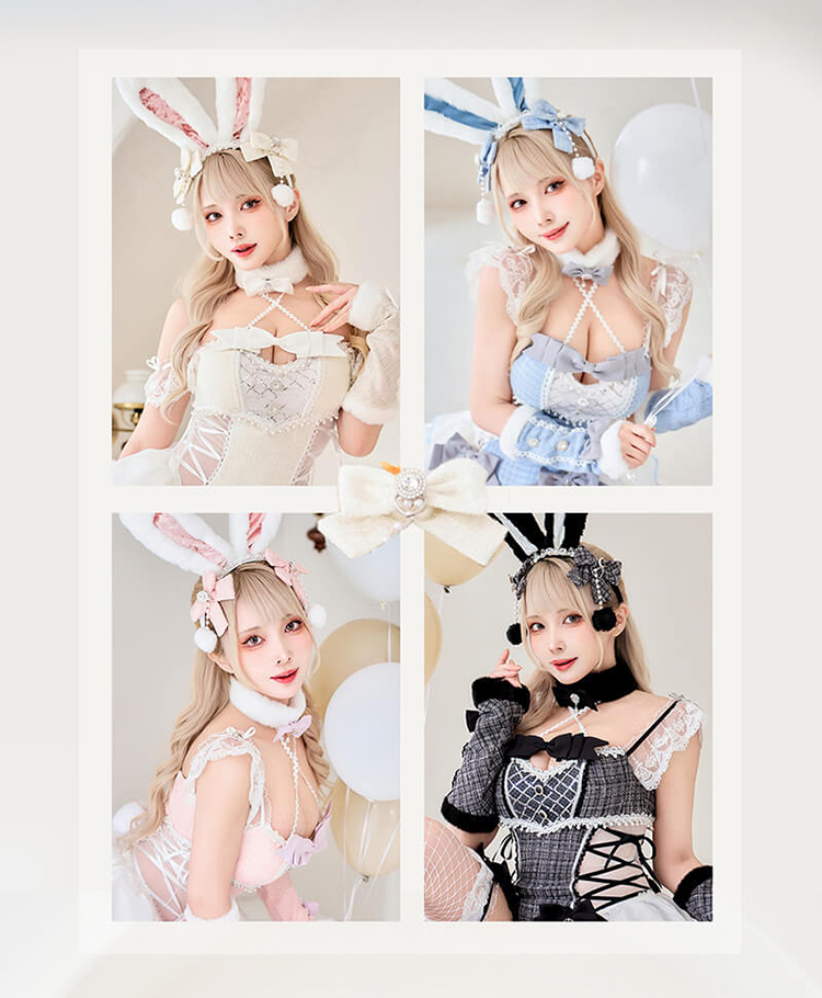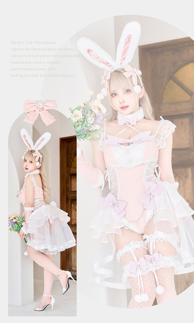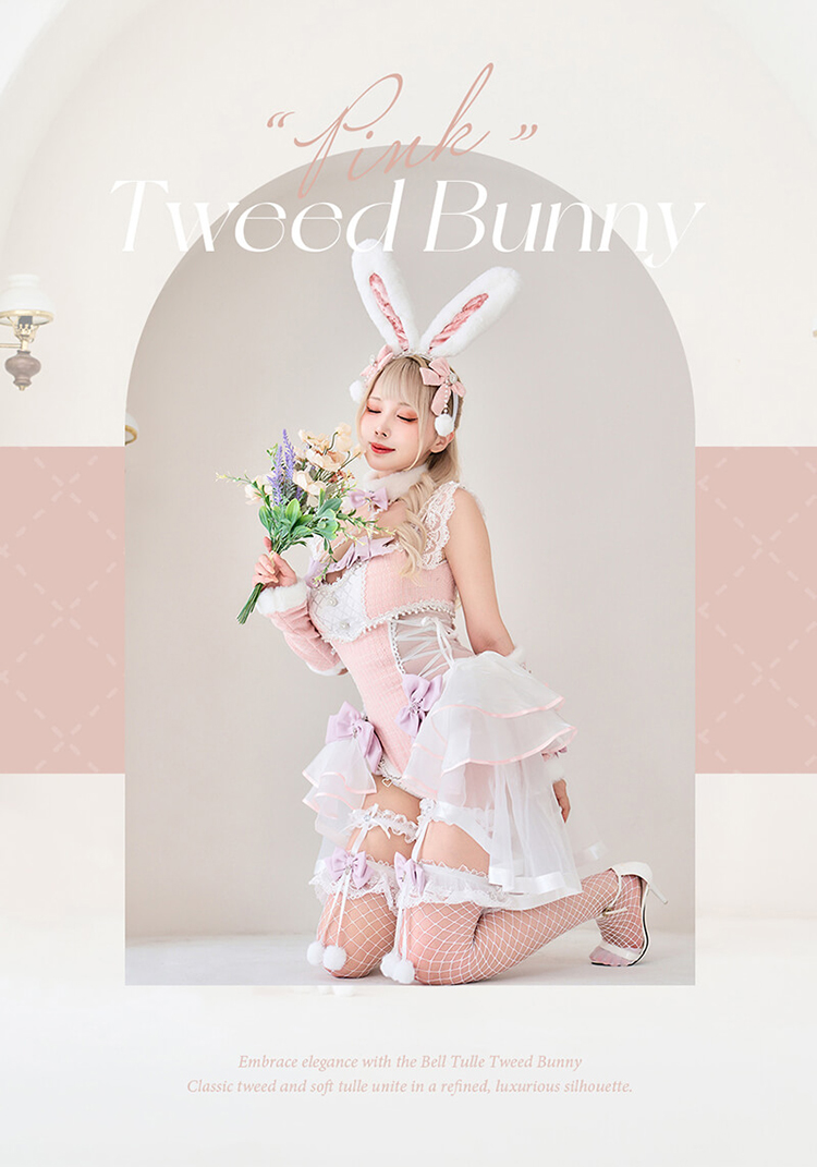 コスプレ アニマル バニーガール うさぎ ウサ耳 白 青 黒 ピンク ツイード マリームーン Malymoon【CS25099】
