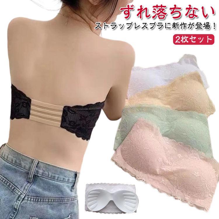 チューブブラ カップ付き カバーレース 下着 2枚セット 総レース チューブトップブラ ブラジャー ノンワイヤー ベアトップ 肩紐なし チューブトップ