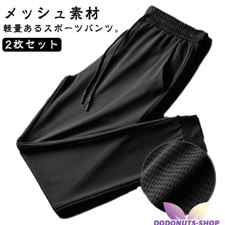 メンズ アイスシルク 長ズボン メッシュ素材 UVカット スウェットパンツ 【2枚セット】ストレッチパンツ 涼しい ストレッチ M-5XL パンツ ス
