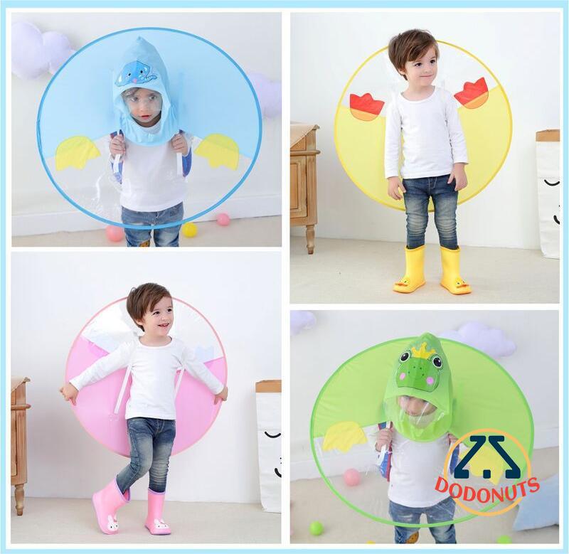 ハンズフリー傘 キッズ 子供用 帽子風傘 キャップレインコート レインハット風 ポンチョ風 雨具 レインウェア 雨合羽 雨がっぱ アヒル カエル かわ