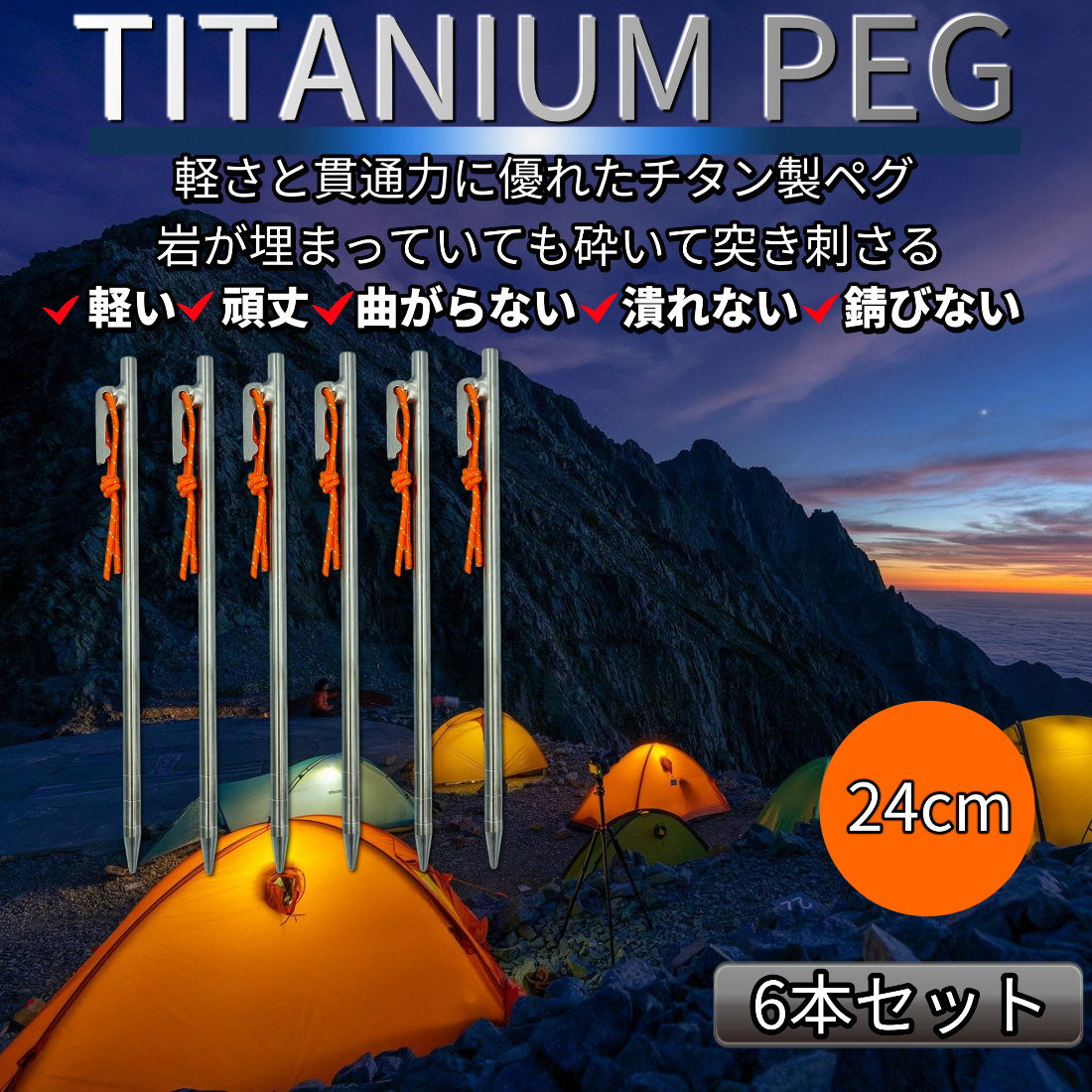 チタンペグ ペグ チタン テントペグ 24cm 6本セット テント タープ アウトドア キャンプ キャンプ用品 キャンプ用具 反射材ロープ付き 送料無料 最短翌日お届け
