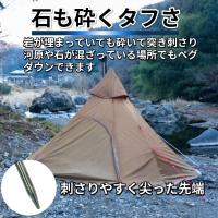 【硬い地面にもしっかり打ち込める】チタン製のペグは、しっかりとしたタフな強度を持っています。壊れにくく硬い地面での使用に適しており、頑丈で耐久性があるため鉄のハンマーでガンガン地面に打ち込め貫通力に優れています。石が混じった地面でも安心して使用できます。