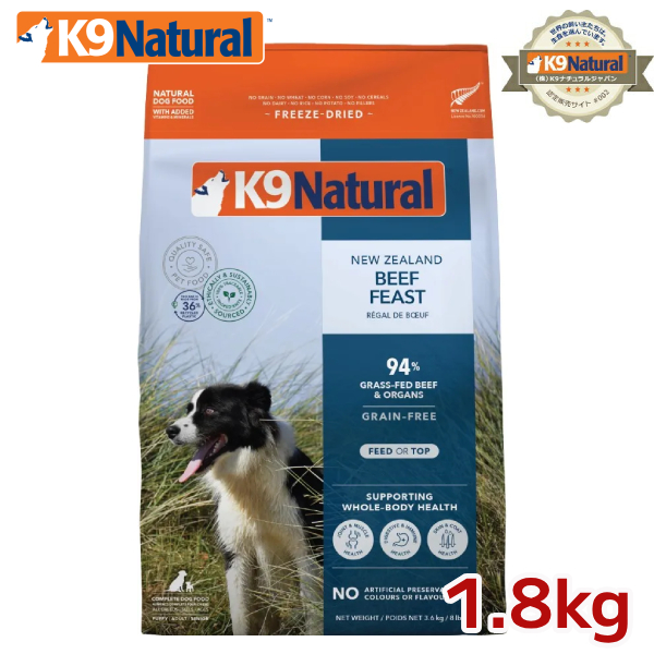 K9ナチュラル フリーズドライ ビーフ1.8kg(100%ナチュラル生食ドッグフード 総合栄養食 K9Natural ニュージーランド K006)