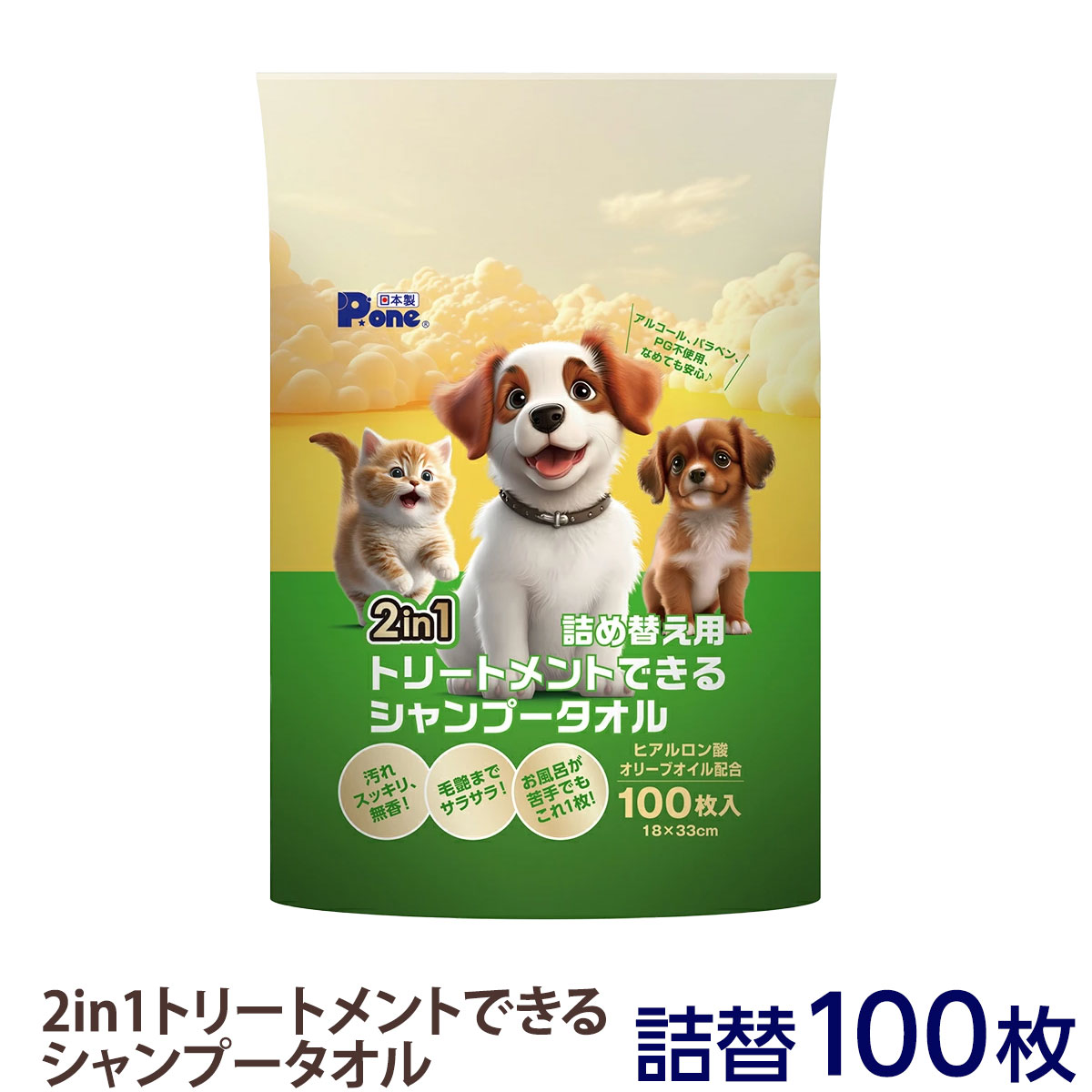ピーワン P.one 第一衛材 2in1トリートメントできるシャンプータオル 詰替 100枚 犬 猫 お手入れ 老犬 足裏 肉球 ボディタオル