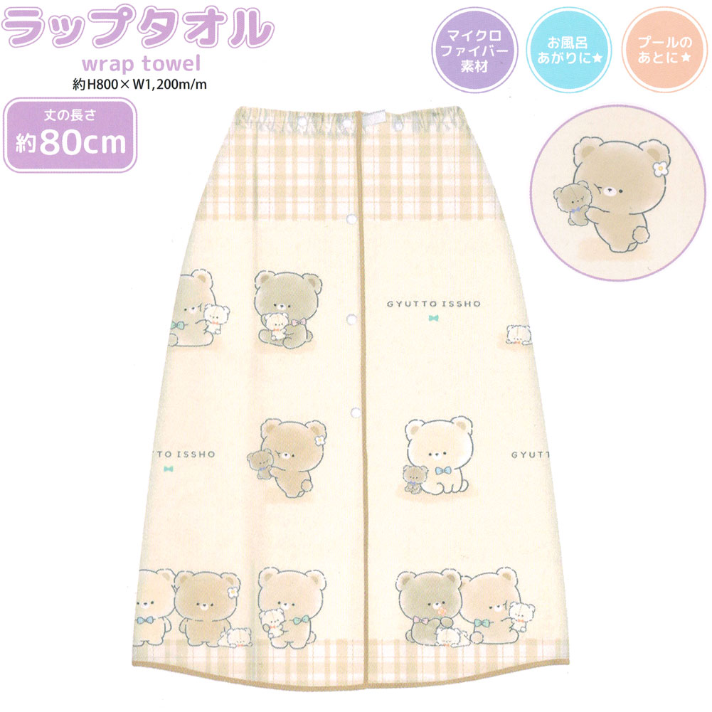 ラップタオル 女の子 向け 80cm ぎゅっといっしょ クマ プール スイミング 水泳 海 旅行 お泊り お風呂 クラックス おしゃれ で かわいい 文房具