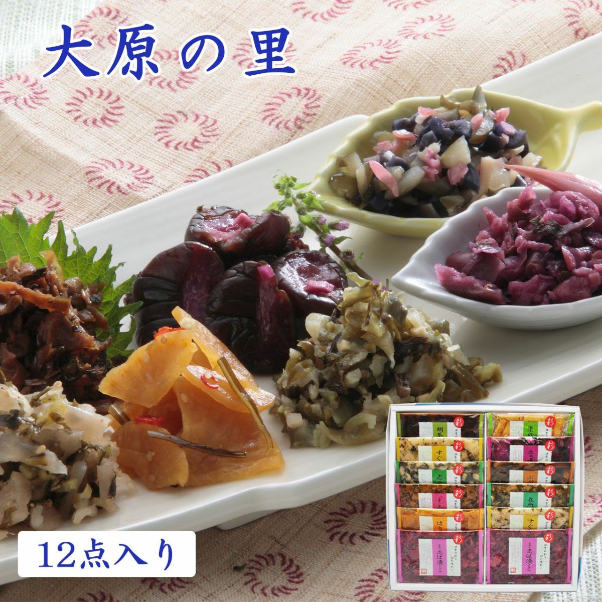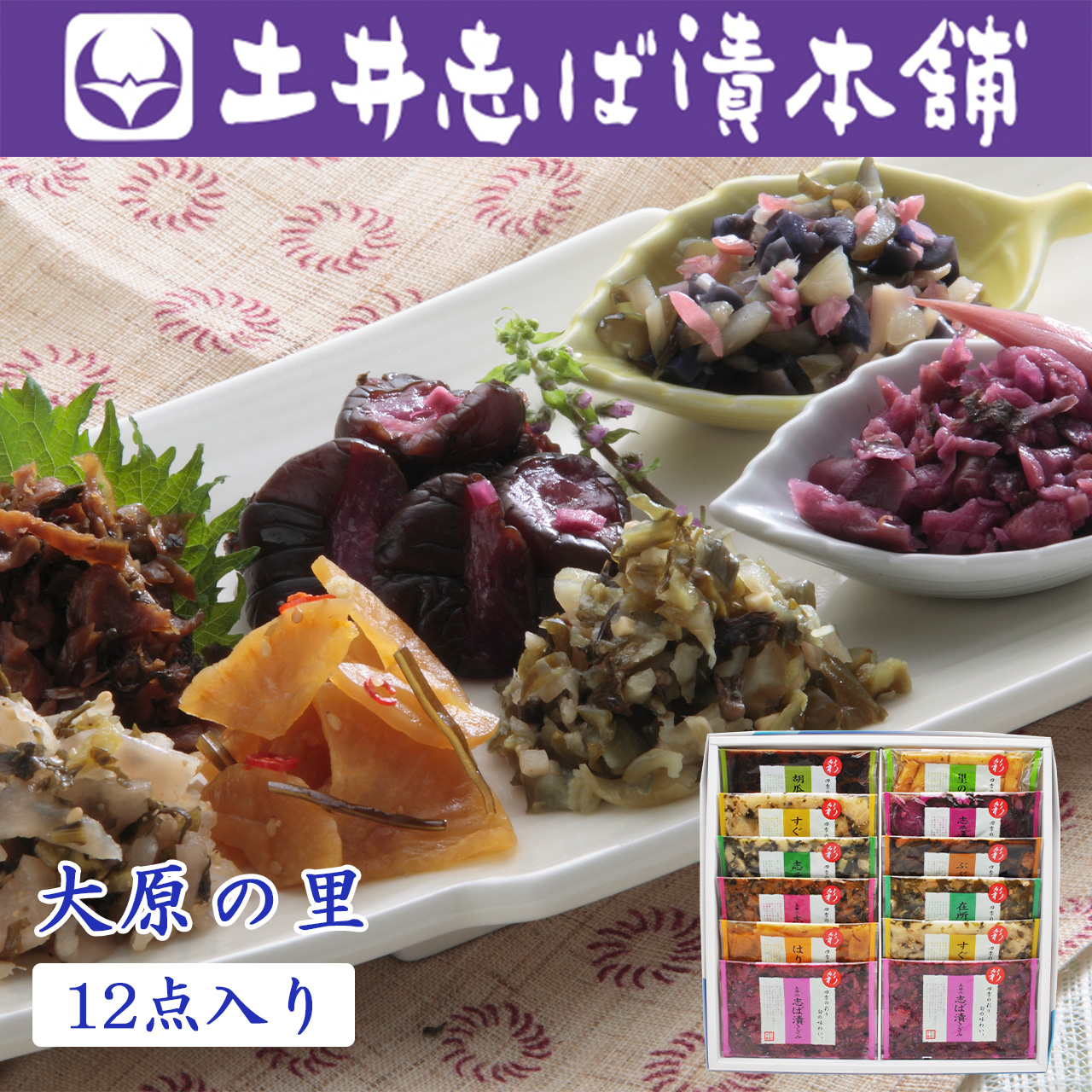 | 詰合せ内容 | 10種12点入 | 志ば漬きざみ×2・すぐききざみ×2・志そ漬きゅうり・胡瓜からし漬・志ば漬醤油味・はりはり漬・ぶぶ漬しぐれ・在所漬きざみ・志そ風味漬・里のごぼう(各40g) |