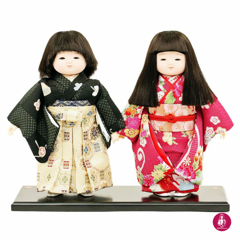 人形工房天祥 市松人形 立ち姿 5号 ペア 男の子 女の子 横幅31cm×奥行11cm×高さ24cm(#032)