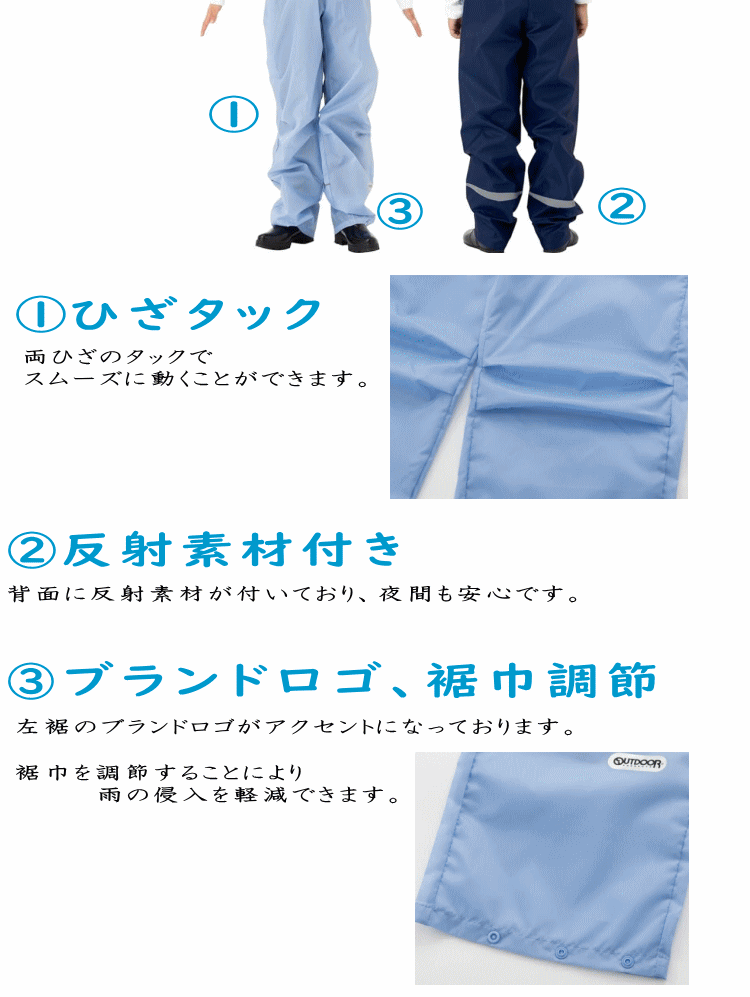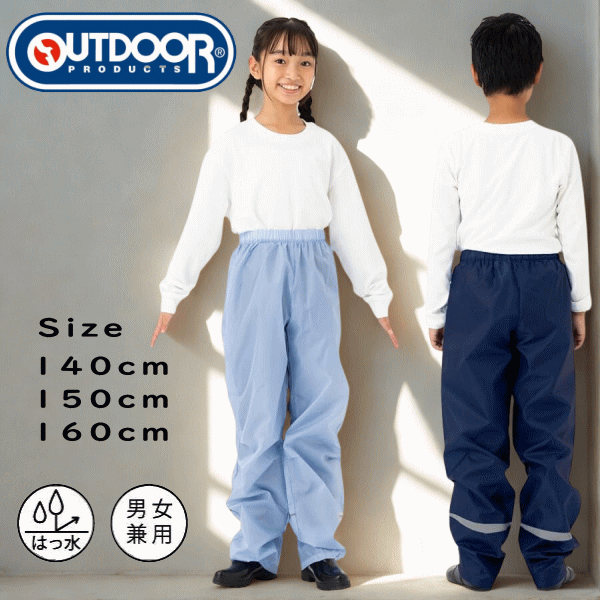 レインパンツ 雨具 合羽 カッパ outdoor products アウトドアプロダクツ 自転車 通勤 通学 小学生 中学生 ネイビー色 ライトブルー色 05002348