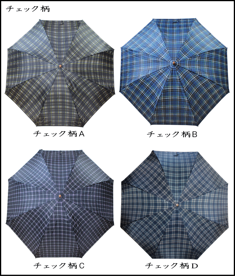 \格安・あすつく対応/70cm 8本骨 ジャンプ傘 ベーシック シンプル メンズ レディース ジャンプ式 雨傘 ネイビー系チェック柄 5柄展開2712 2716