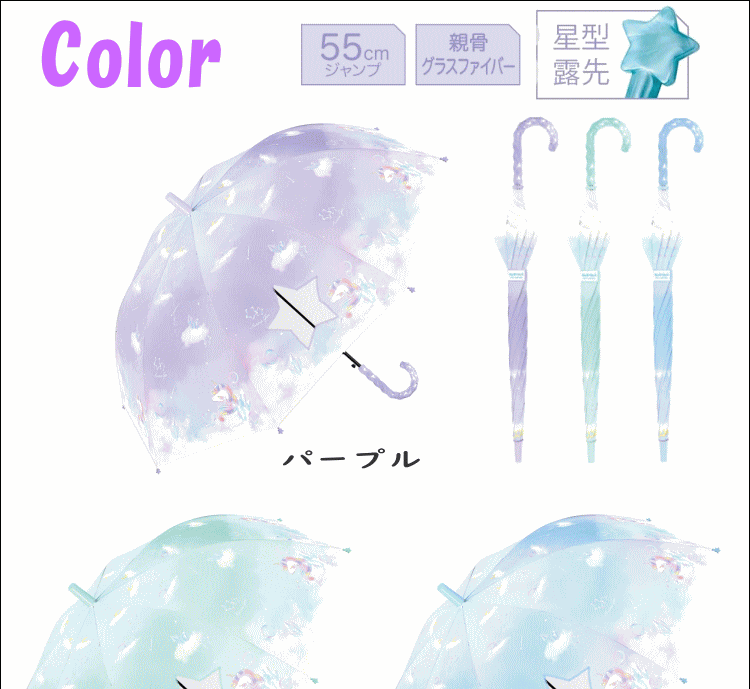 55cm 55センチ 学童子供傘 キッズ 丈夫なグラスファイバー製 窓付き ジャンプ傘 女児傘 女の子 かわいい 565-051 ジュエルユニコーン
