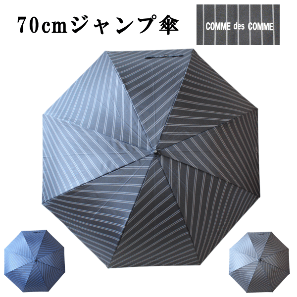 70cm 70センチ 紳士傘 メンズ COMME des COMME(コムデコム) 丈夫なグラスファイバー製 ジャンプ傘 ストライプ柄 7042 ブラック色 ネイビー色 グレー色
