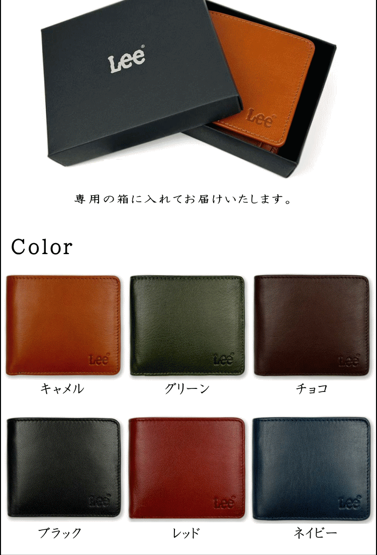 財布 Lee ゴートレザー 山羊革 本革 メンズ 2つ折り財布 二つ折り財布 小銭入れ有り LES-2 キャメル色 グリーン色 チョコ色 ブラック色 レッド色 ネイビー色
