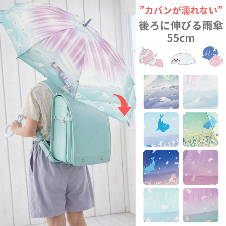 ランドセルが濡れない傘 後ろが伸びる 子供傘 55cm ジャンプ 傘 子供 小学生 キッズ 伸びる傘 スクール傘 リュックが濡れない傘 バックスライド 伸びる 長傘